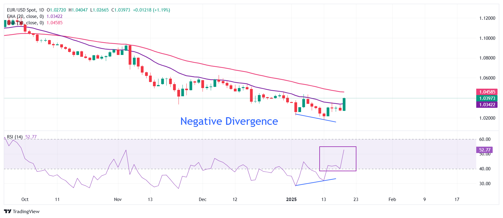 欧元/美元在周一的北美交易时段飙升至接近1.0400。由于《华尔街日报》(WSJ)的一份报告显示,美国当选总统唐纳德·特朗普的总统备忘录缺乏立即实施关税的内容,美元(USD)的避险吸引力显著减弱,该货币对飙升。追踪美元兑六种主要货币价值的美元指数(DXY)暴跌至接近108.25。