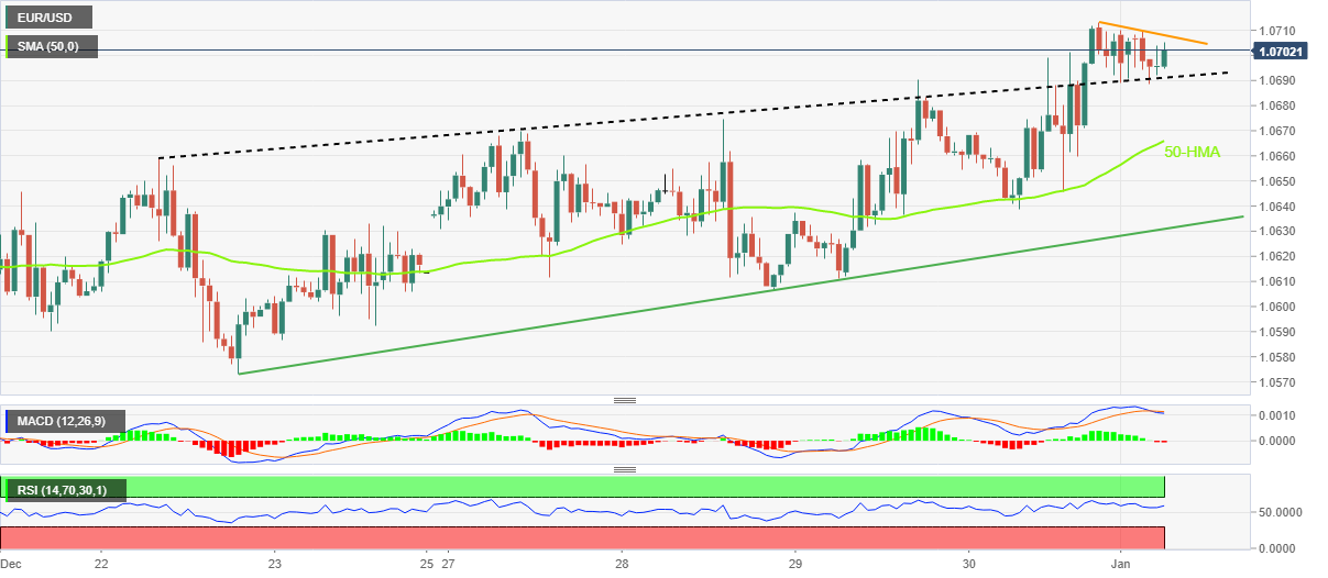 即便如此,50-HMA以及自12月22日以来的上行支撑缐可能限制汇价进一步下跌,它们分别接近1.0665和1.0630。