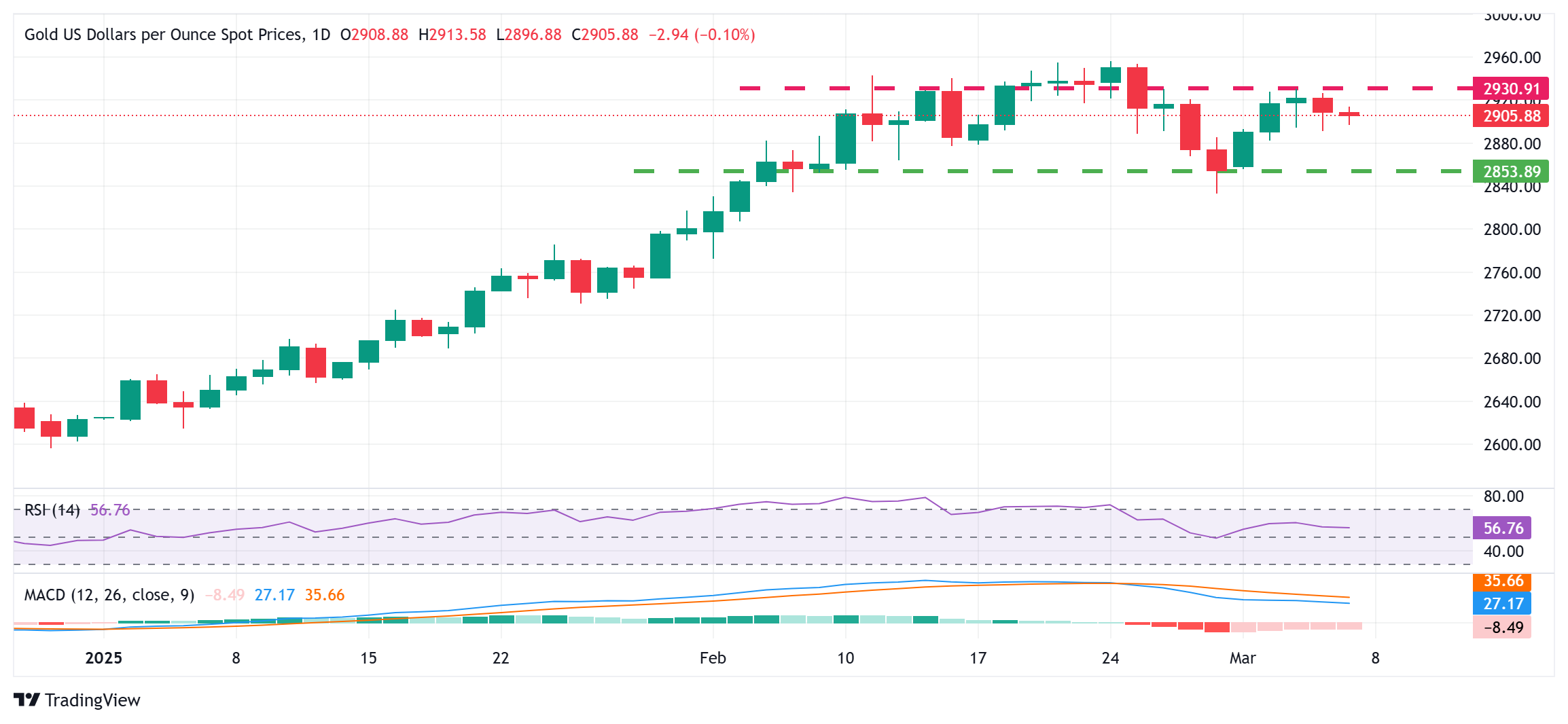 另一方面,2926-2930美元区域现在似乎已成為一个直接阻力位,若突破该区域,金价可能会重新测试2月份触及的历史高点,约在2956美元附近。若出现一些后续𧹒盘,将被视為看涨交易者的新触发点,并為过去三个月左右所见的近期确立的上升趋势的恢复铺平道路。