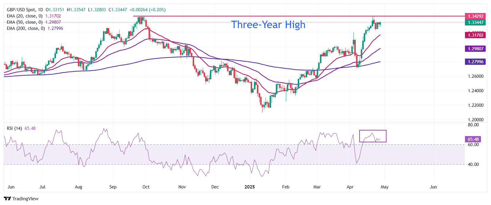在上方,心理关口1.3500将是该货币对的关键障碍。向下看,4月3日的高点约為1.3200将作為主要支撑区域。