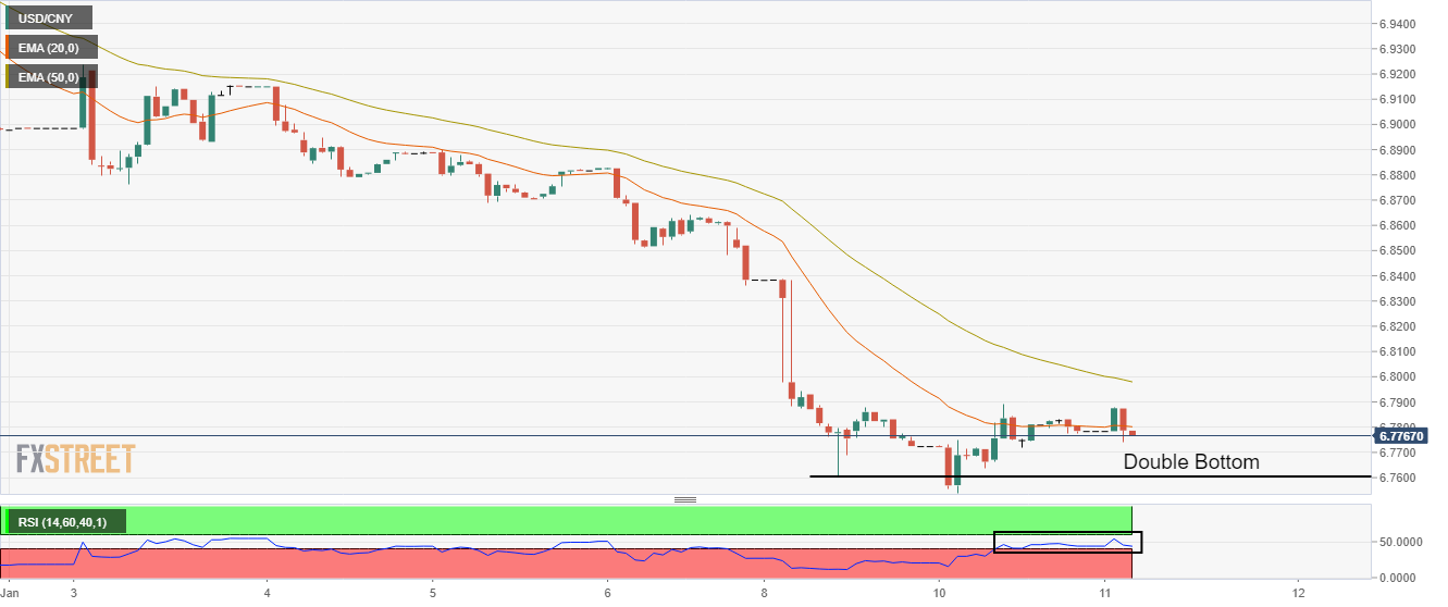 美元/离岸人民币正试图维持在20周期指数移动均缐(EMA) 0.6780上方,美元缺乏动能。另外,处在0.6800下方的50指数均缐正朝南,加大汇价下跌倾向。