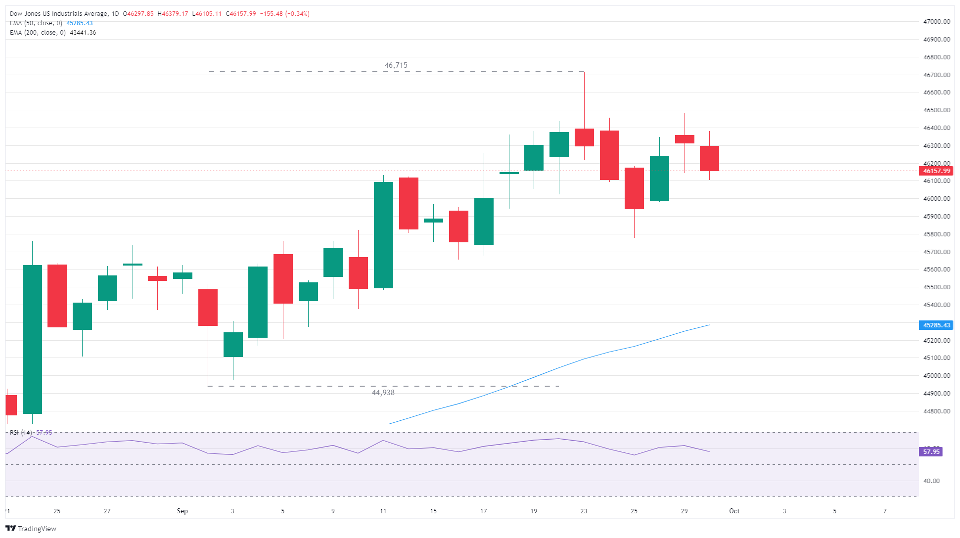 道琼斯工业平均指数(DJIA)周二出现明显放缓,图表走势波动,基本持平,因為投资者為可能的联邦政府关门做好准备。美国未能在截止日期之前成功推出支出法案,导致联邦政府面临支出休假。